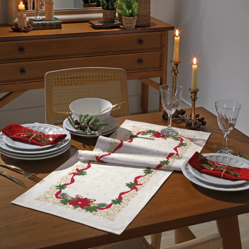 Incluye: 1 Camino de Mesa 35×100 cm 50% Algodón 50% Poliéster 170 gsm