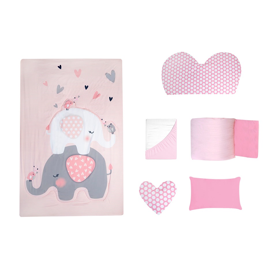 Ajuste perfecto: el set incluye un edredón (talla CCC o CUNA), una sábana de cajón ajustable (talla CCC o CUNA), protector de barandal, una cabecera, una almohadita y un cojín pijamera, para guardar su pijamita.