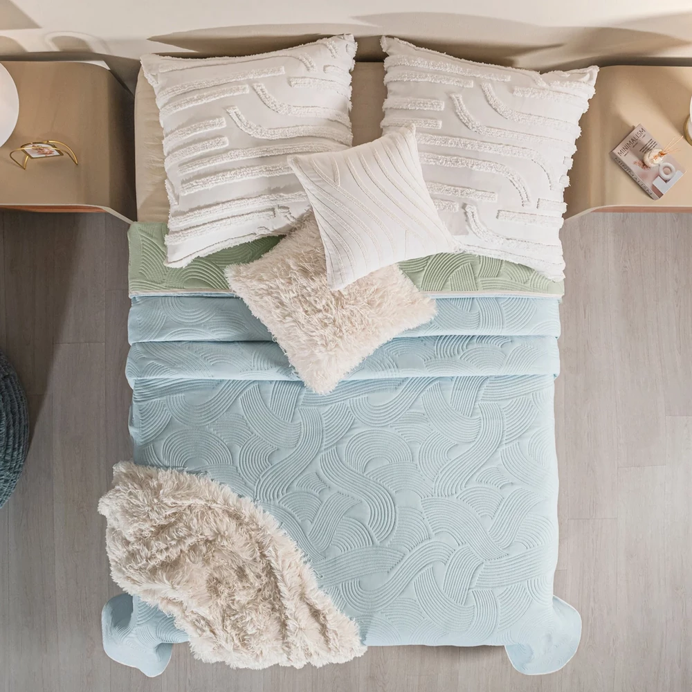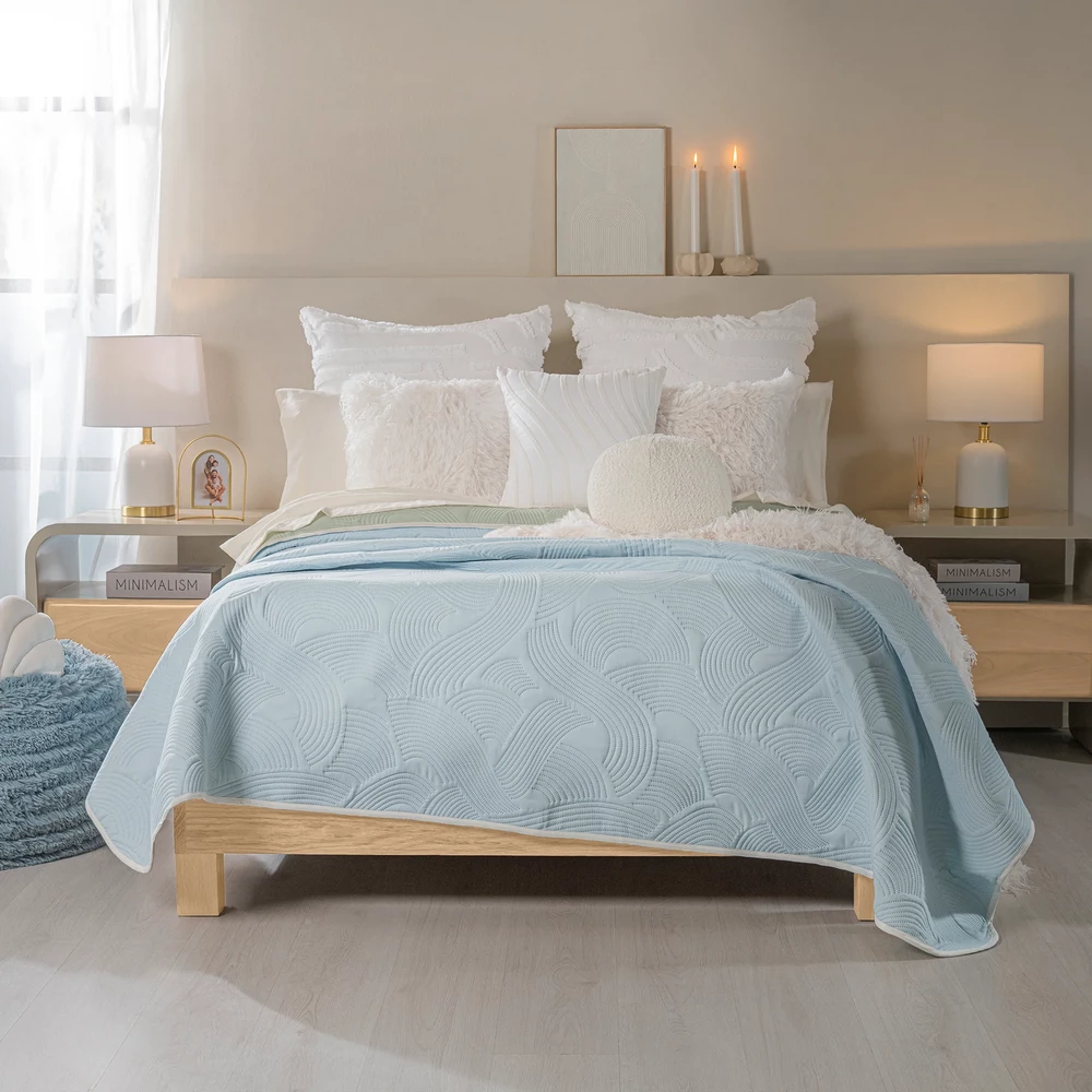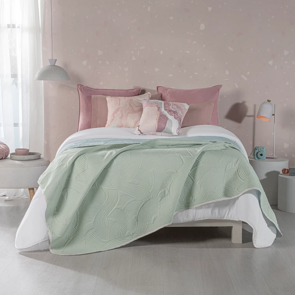 Déjate envolver por la suavidad del azul y la frescura del verde y llena tu dormitorio de confort y estilo. Edredón ultradelgado. Fácil de lavar y guardar. Microfibra 100% Poliéster