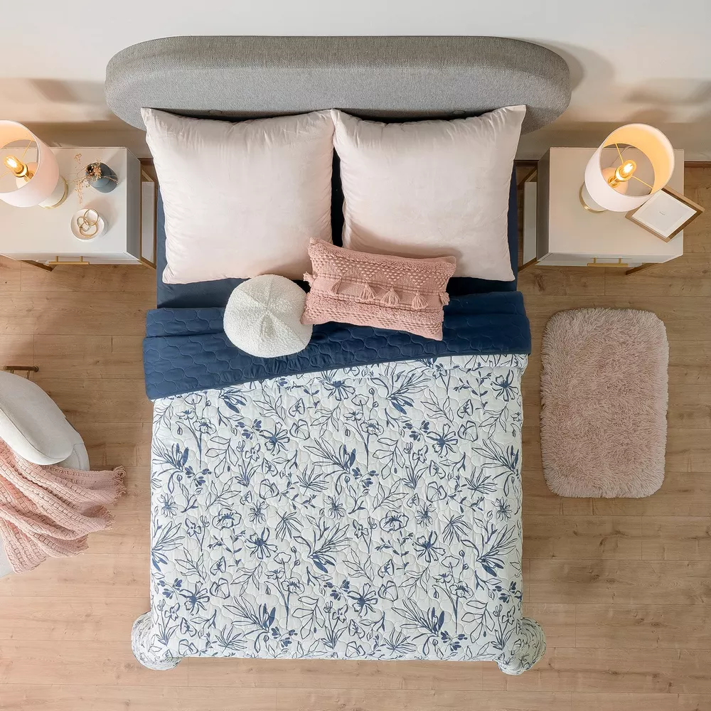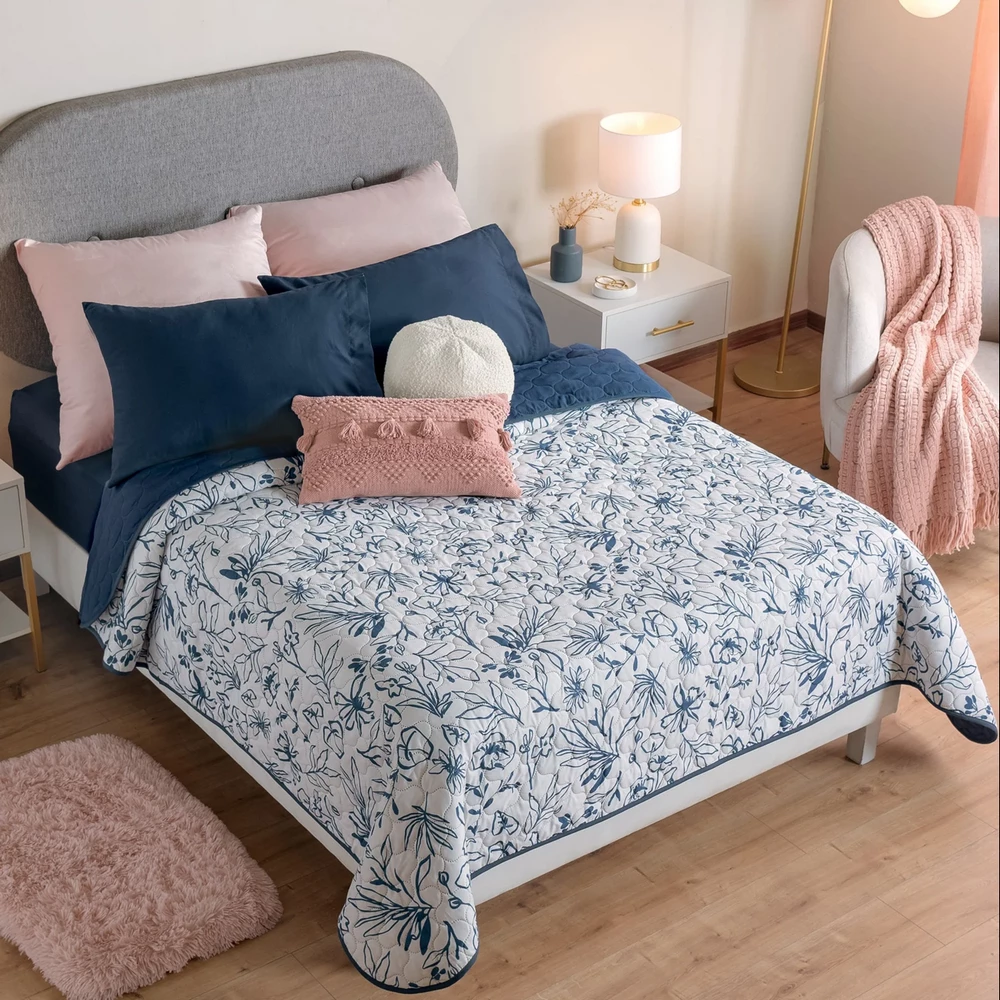 Ideal para quienes quieren dar un toque artístico a su espacio. El color azul con sus flores llevarán a tu dormitorio la personalidad que estabas buscando. Edredón ultradelgado. Fácil de lavar y guardar.