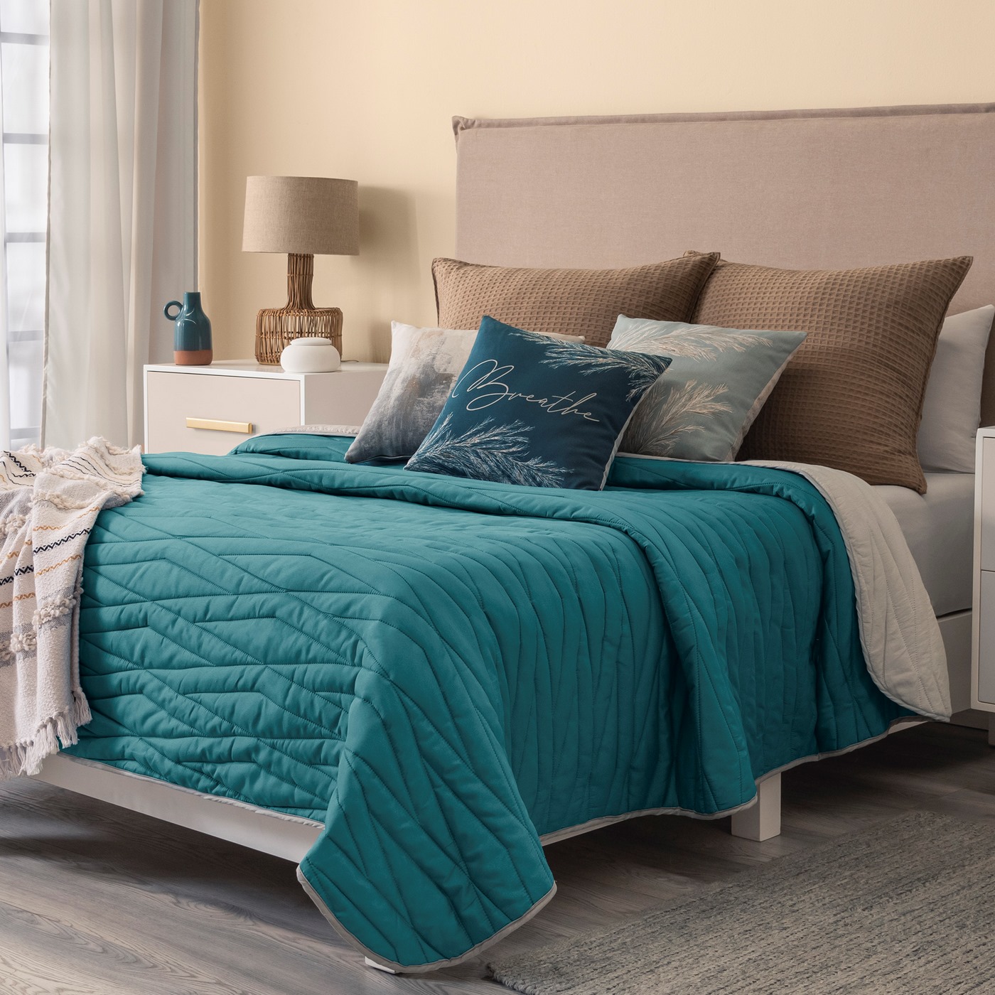 Edredón ligero y con un tacto suave, son perfectas para dar un toque a tu estilo, combinándolo con tus accesorios favoritos; El liso una buena elección ya que inducen a la relajación, favoreciendo el descanso.