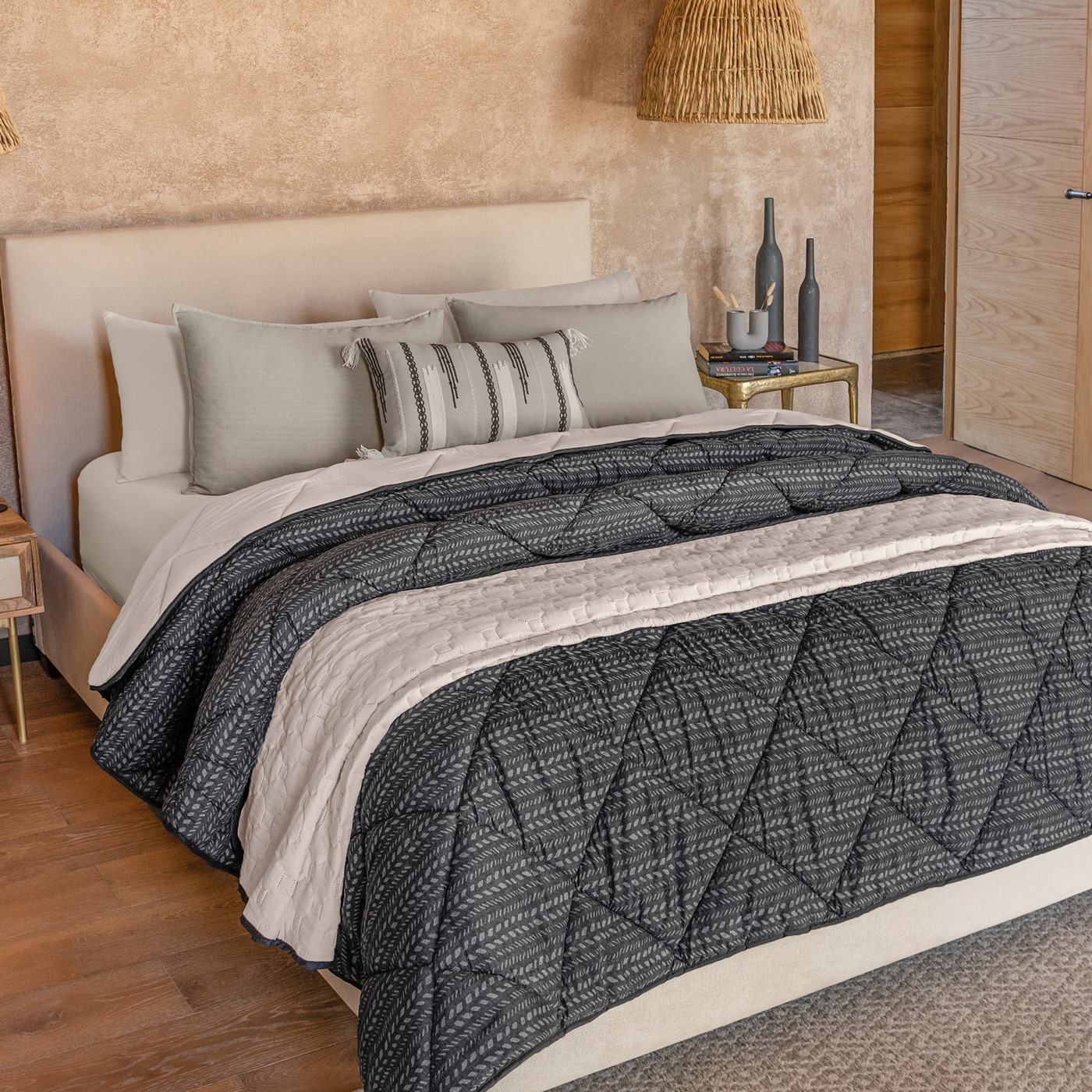 Lleva esta tendencia llena de texturas y tejidos a tu espacio favorito dándole ese toque mexicano a tu habitación. Disfruta de su cojín bordado con chenille y su increíble cubrecama para darle ese look de capas. Juego de edredón doble vista. Suave por su textura viasoft. Incluye cubrecama, fundas decorativas y cojín bordado con flecos en sus lados.