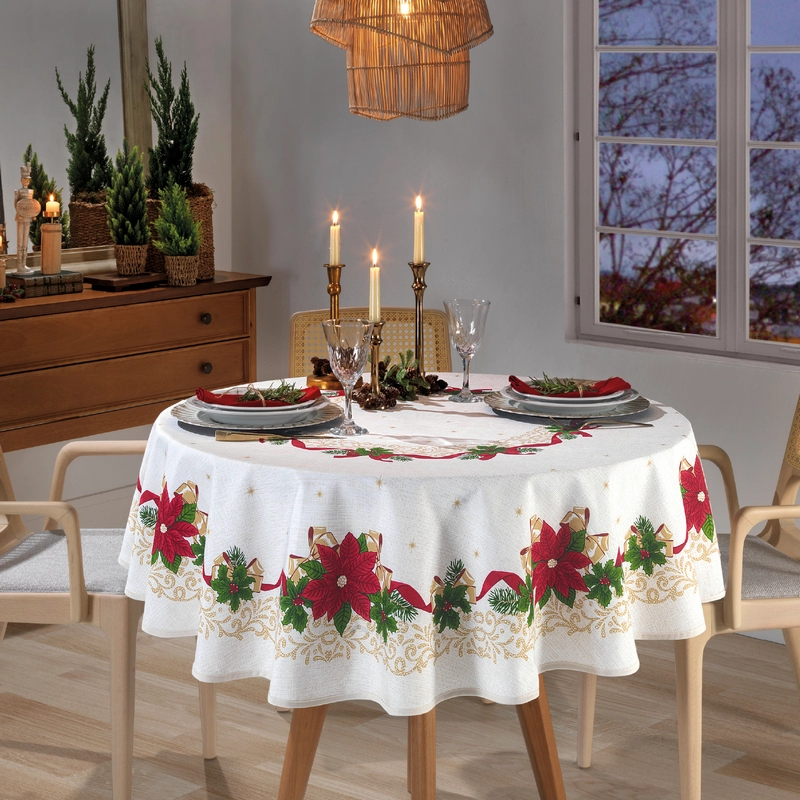 Incluye: 1 Mantel Circular 160 cm Diámetro 50% Algodón 50% Poliéster