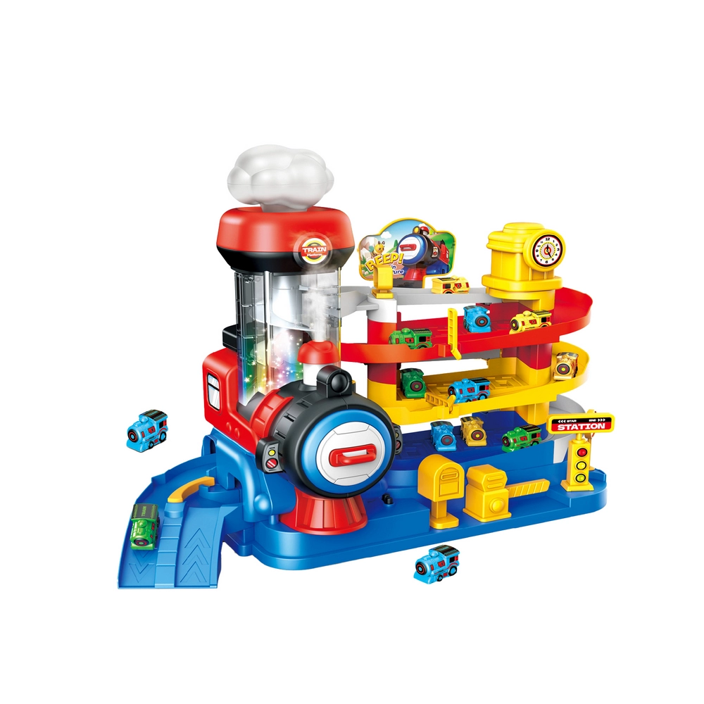 Incluye: Atomizador 6 Autos Pista Luces y Sonido 44.5x20x31.5 cm Baterías no Incluidas +3 Años