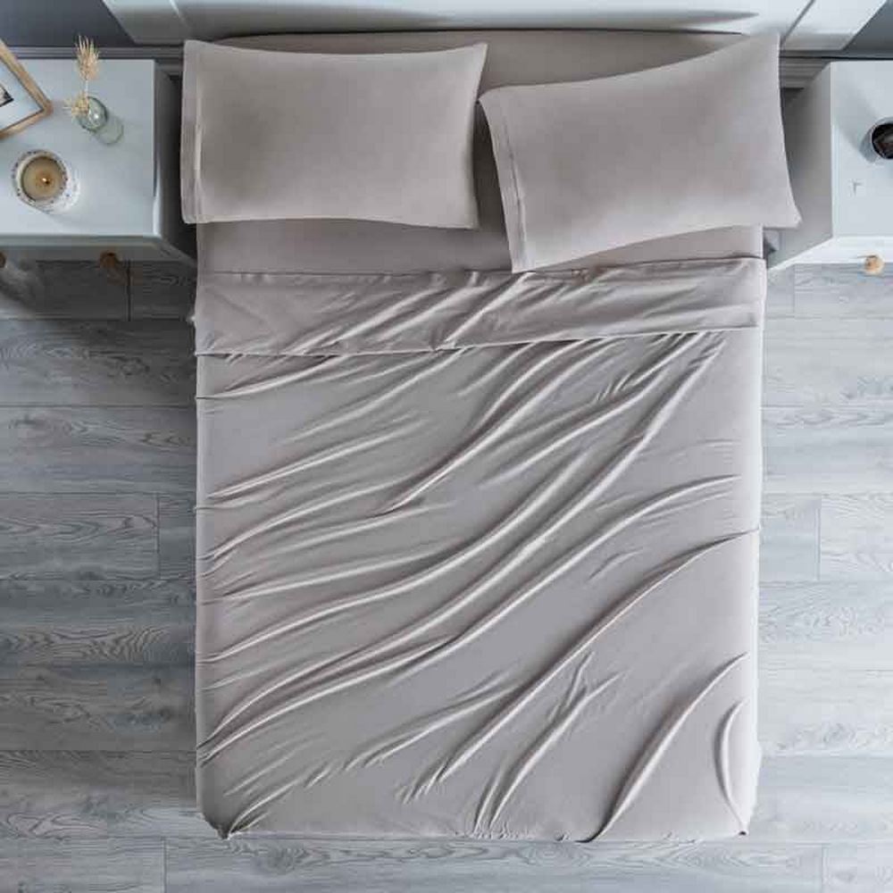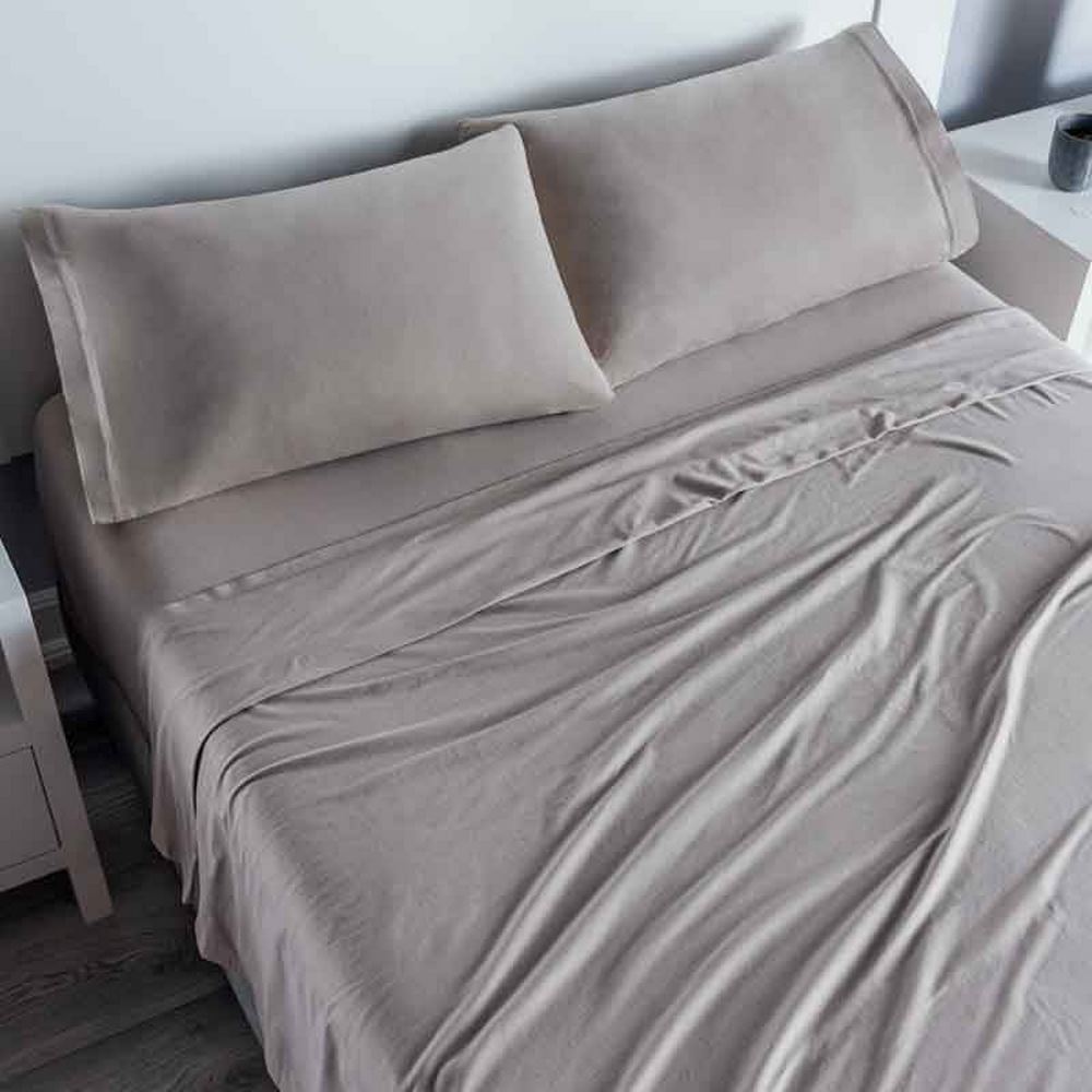 Sábanas con tejido de camiseta que se adapta a la temperatura corporal y brinda comodidad a tu descanso