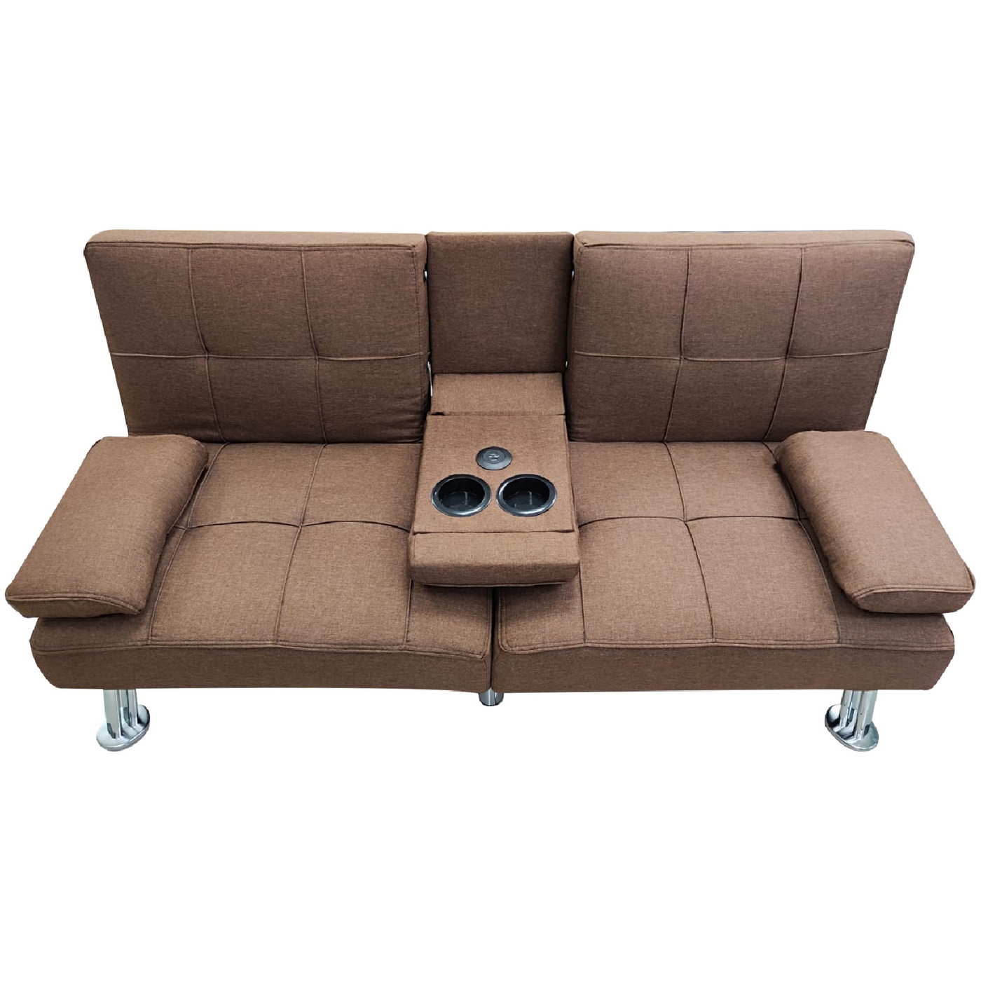 Incluye: 1 Sofá Cama Cojín de Brazo Lavable Portavasos y USB Patas de Metal Sofá: 157x80x75 cm Extendido: 97x157x20 cm Material Microfibra